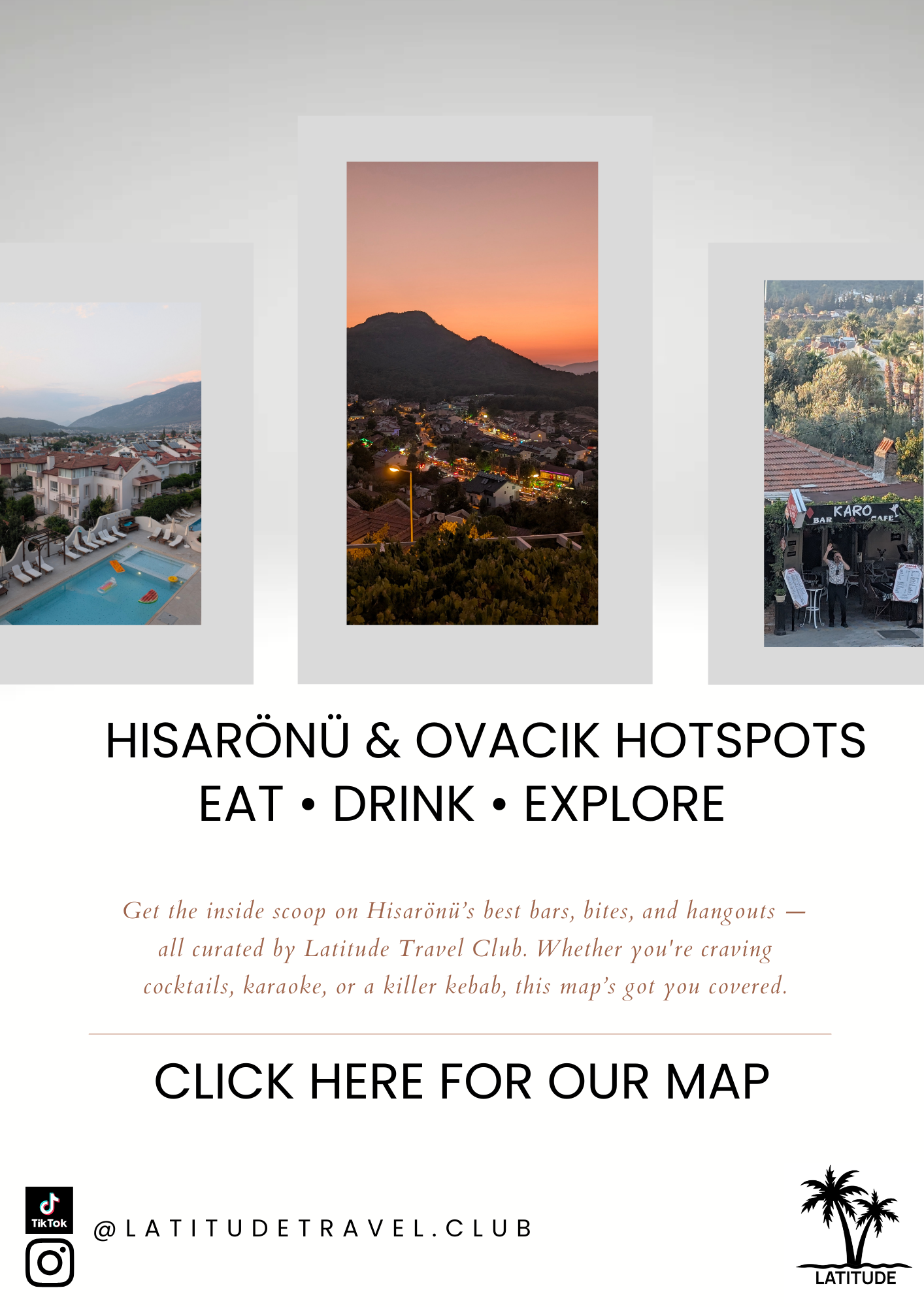 Get the inside scoop on Hisarönü’s best bars, bites, and hangouts — all curated by Latitude Travel Club. Whether you're craving cocktails, karaoke, or a killer kebab, this map’s got you covered.